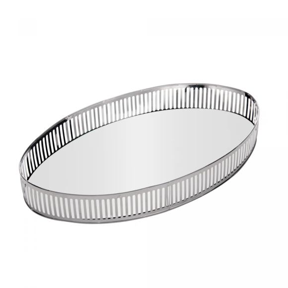 BANDEJA DE METAL C/ESPELHO BERLIN PRATEADA